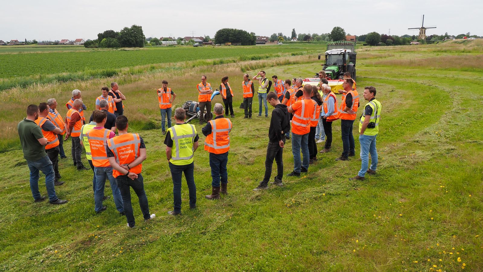 Na de middagpauze volgde het buitengedeelte bij het Simonsdijkje in Puttershoek, een prachtige brede dijk met een bloemrijke vegetatie. Hier hebben de verschillende organisaties hun maaimaterieel aan het werk kunnen laten zien aan de anderen. Wij kijken terug op een bijzonder vruchtbare bijeenkomst waarbij de contacten tussen de organisaties weer eens zijn aangehaald en verder versterkt zijn!