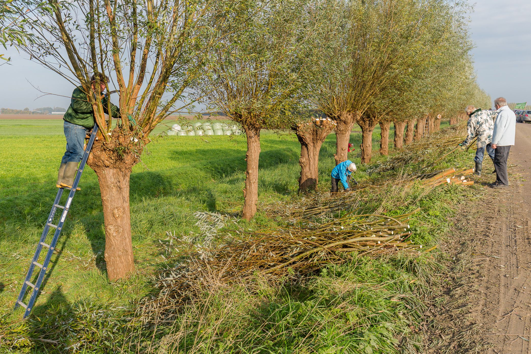 Het werk bestaat uiteraard uit het knotten van de wilgen (snoeien), maar ook: