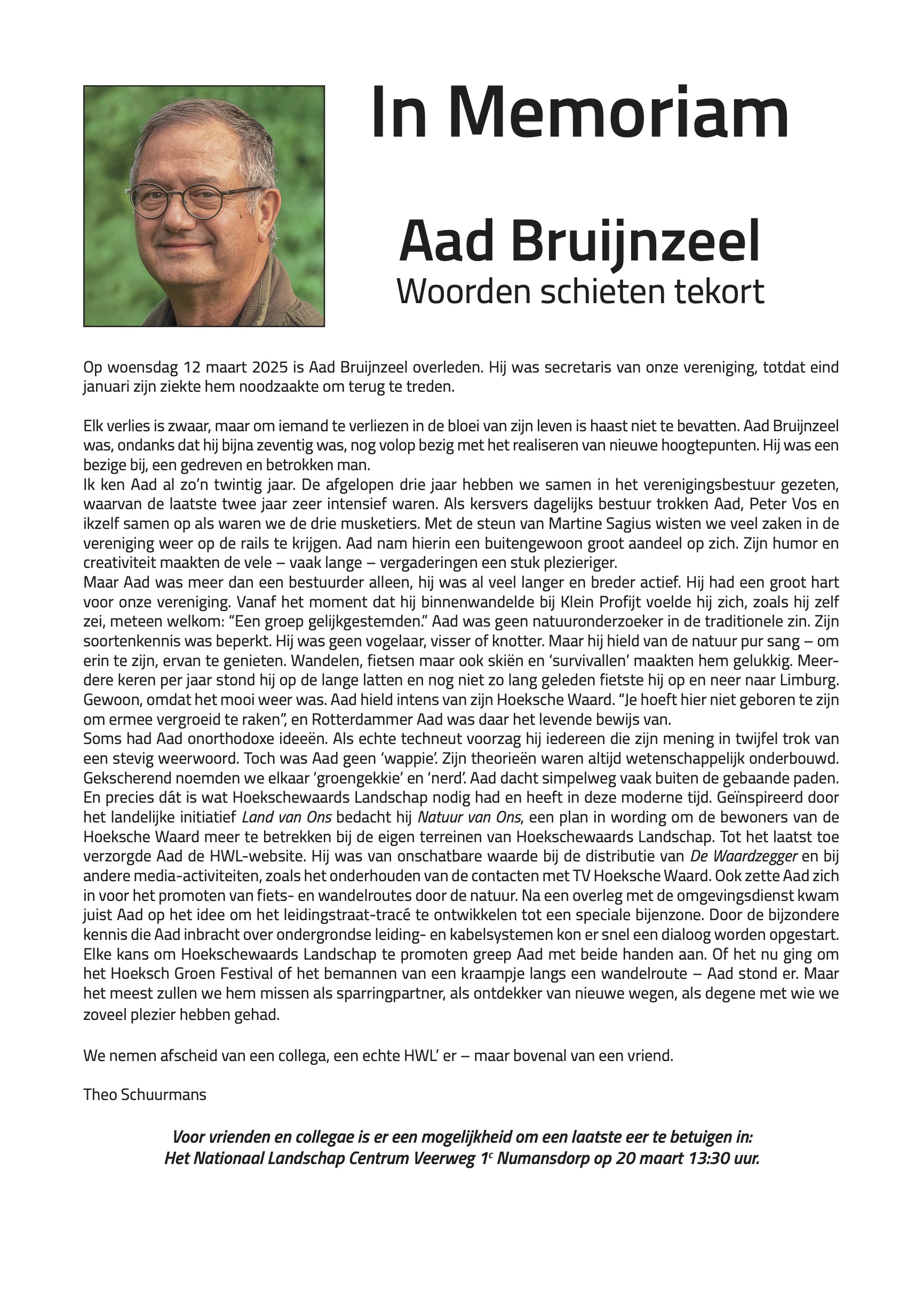 Aad Bruijnzeel - in Memoriam