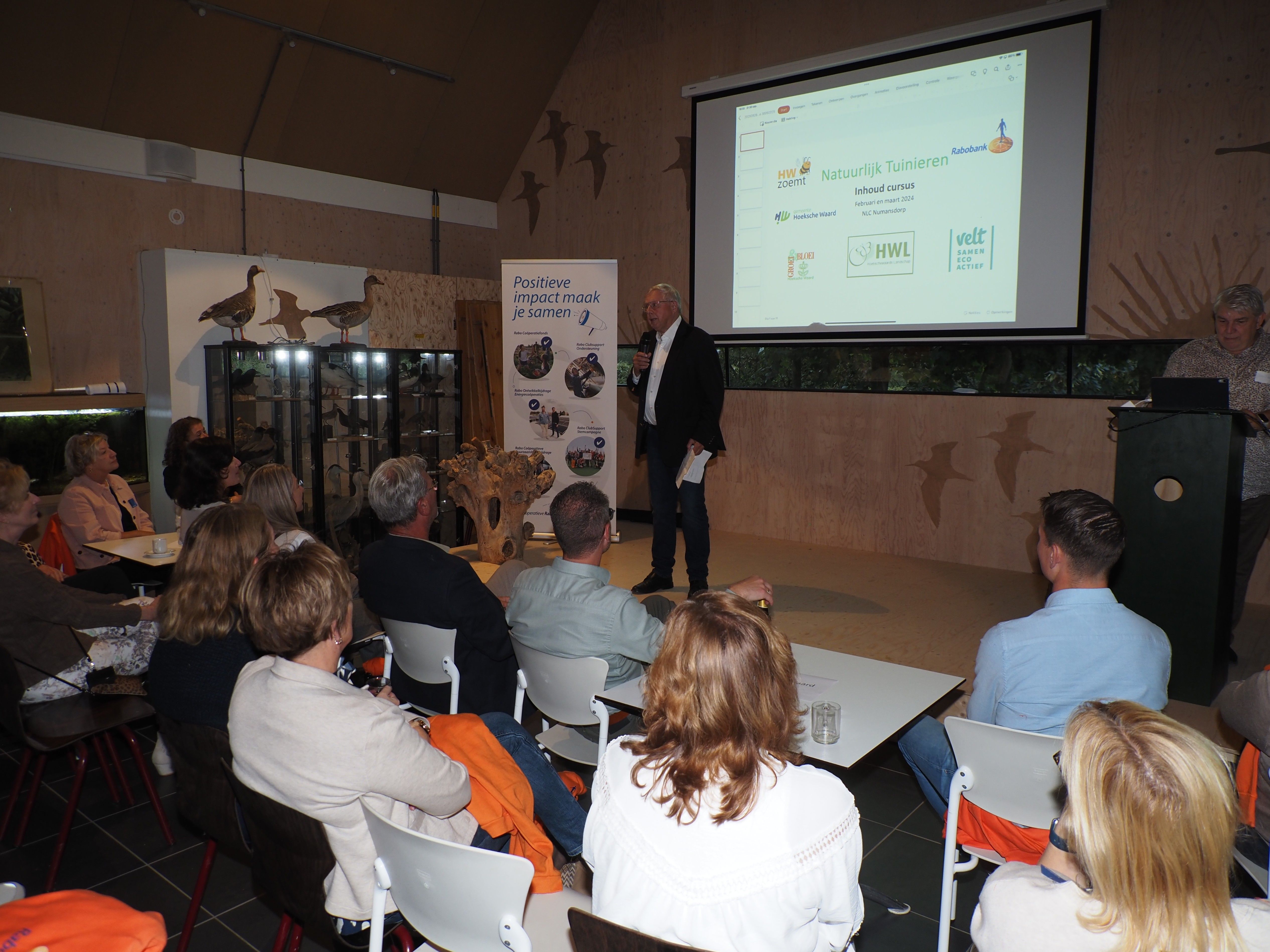 Ook Henk de Koning (HWL/HW zoemt) als organisator van de cursus Natuurlijk Tuinieren kreeg de kans om de inhoud van deze cursus, die inmiddels in 2024 en 2025 is gegeven, qua doelstelling en inhoud te presenteren. Dit vanwege de in 2024 ontvangen subsidie in het kader van de Rabo Coöperatieve Duurzaamheidsbijdrage.