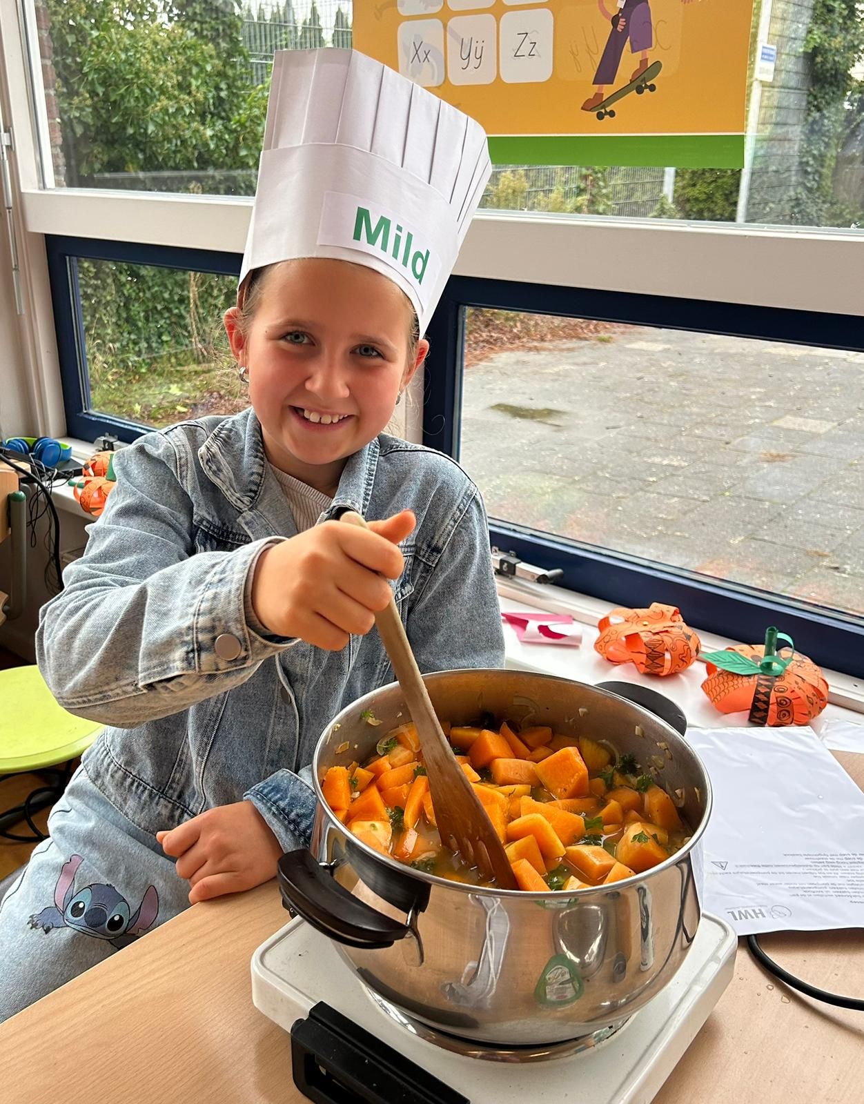 Proeven maar! De meningen waren verdeeld (want smaken verschillen ), maar de milde pompoensoep was de favoriet. Het mooiste van alles? Stralende, enthousiaste kinderen!